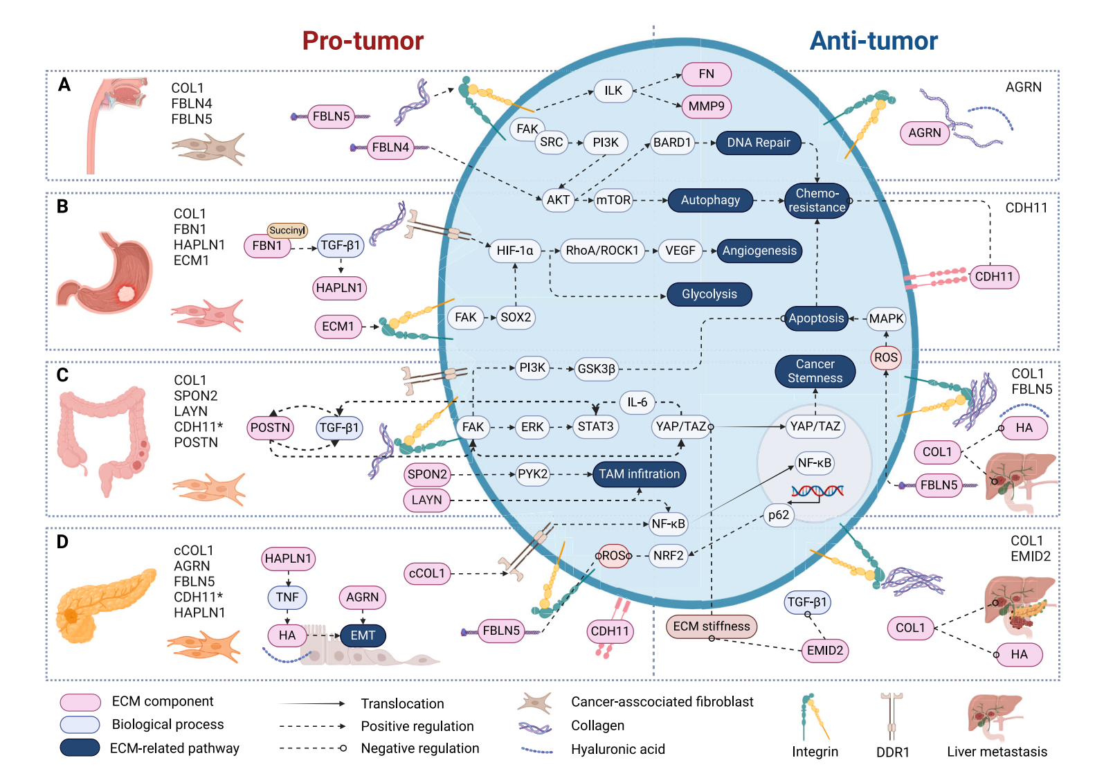 ECM Components and Downstream Signal Pathways Across GI Cancers