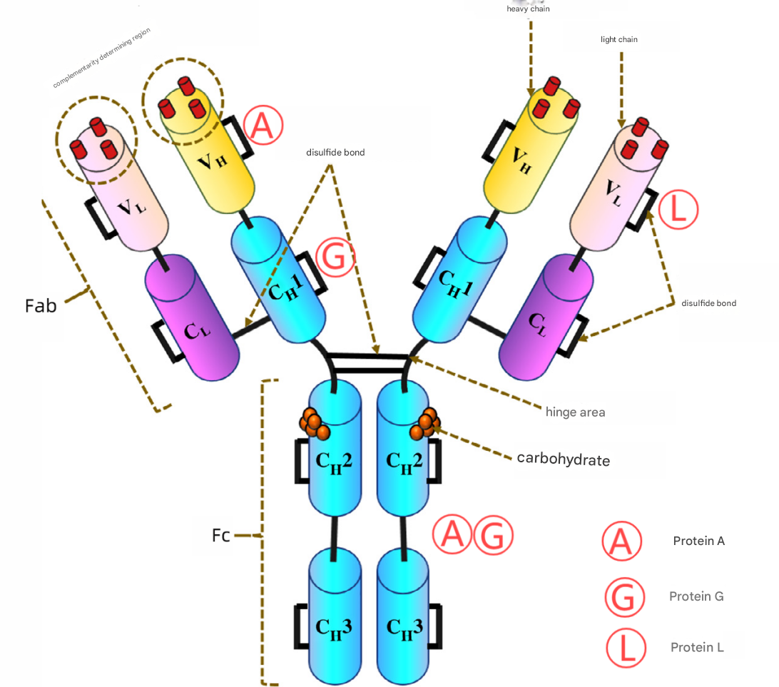 ◆ Protein L is derived from Streptococcus macropepatia and binds to immunoglobulins through L-chain interaction.