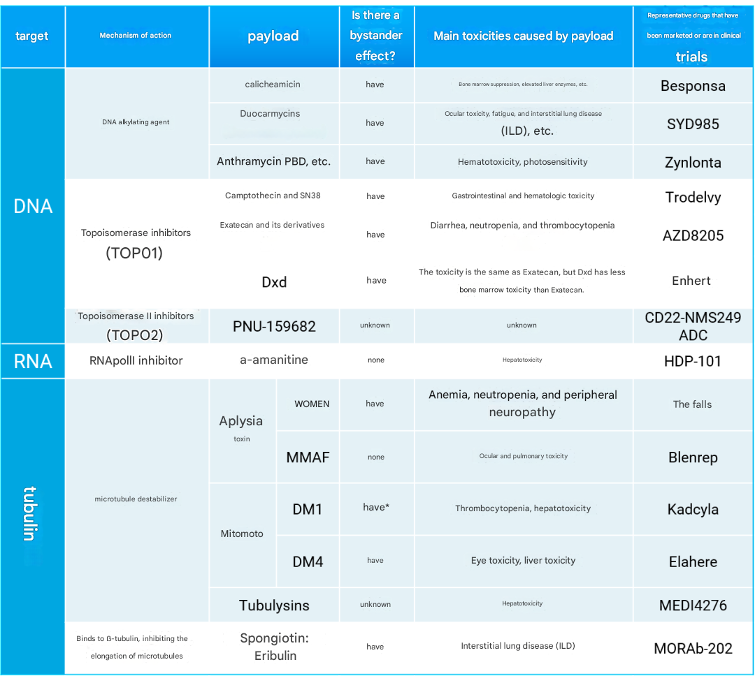 ADC Payload Mechanisms of Action, Bystander Effects, Associated Toxicities, and Drug Examples