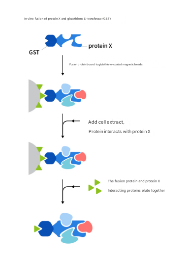 The GST pull-down experiment is based on GST (glutathione-S-transferase), that is, glutathione-S-transferase protein, which can bind to glutathione (GSH), immobilize GSH on magnetic beads to form GSH-magnetic beads, and fuse and express known protein X with GST, and the obtained GST-X protein can be bound to GSH-magnetic beads, and if there is protein Y interacting with X protein in the system, it will form " Magnetic bead-GSH-GST-X-Y" complex, proteins that interact with X protein can be isolated and detected.