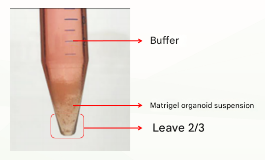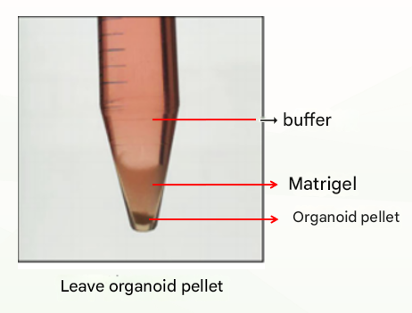 The first is the normal situation, which is divided into three layers (as shown below), at which point the supernatant and matrigel layer are discarded and the organoid pellet can be retained.