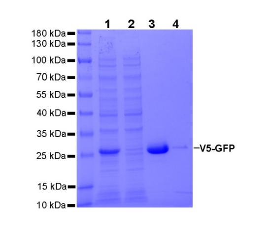 Lane 3: GFP-fusion protein eluted by acidic buffer