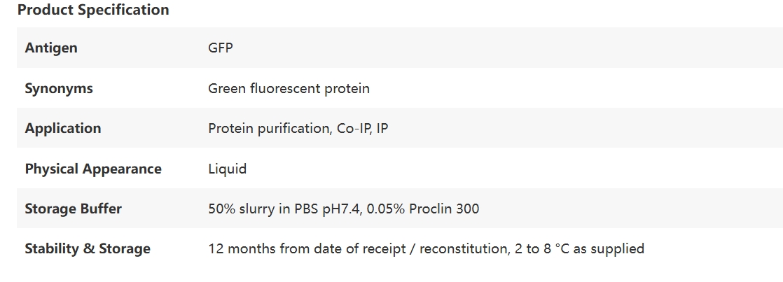 S0B1605 | Rabbit Anti-RFP/mcherry agarose beads | Host : Rabbit | $255 |