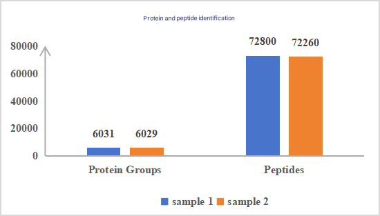 Taking 50 μg of 293T cell protein as an example, the identification of proteins and peptides is shown in the figure below.