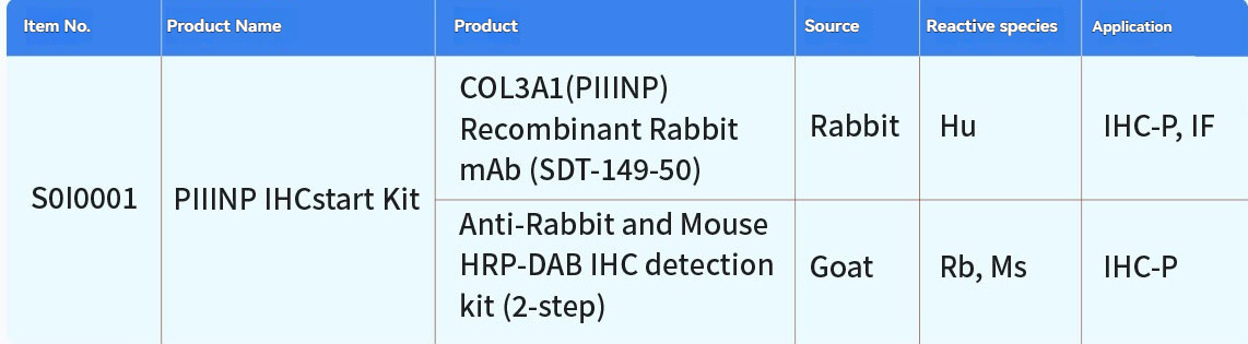S0I0001 | COL3A1(PIIINP) IHCstart Kit | $225 |