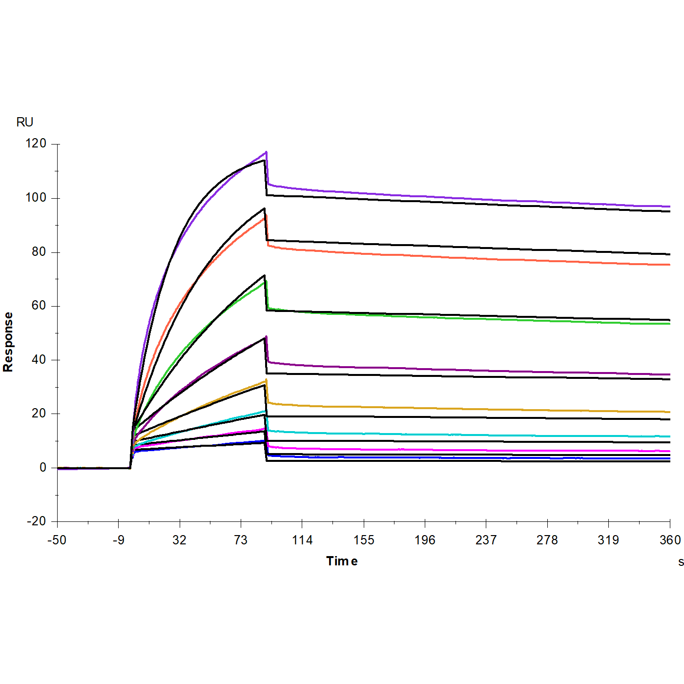 Protein A Chip captured 4-1BB/TNFRSF9 Fc Chimera, Mouse (Cat. No. UA010800), can bind 4-1BB Ligand/TNFSF9 His Tag, Rat (Cat. No. UA010859) with an affinity constant of 1.60nM as determined in SPR assay.