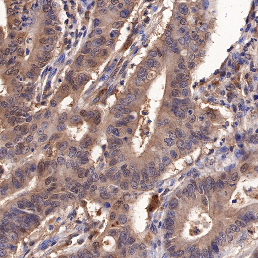IHC shows positive staining in paraffin-embedded human colon cancer. Anti-Galectin-3 antibody was used at 1/2500 dilution, followed by a HRP Polymer for Mouse & Rabbit IgG (ready to use). Counterstained with hematoxylin. Heat mediated antigen retrieval with Tris/EDTA buffer pH9.0 was performed before commencing with IHC staining protocol.