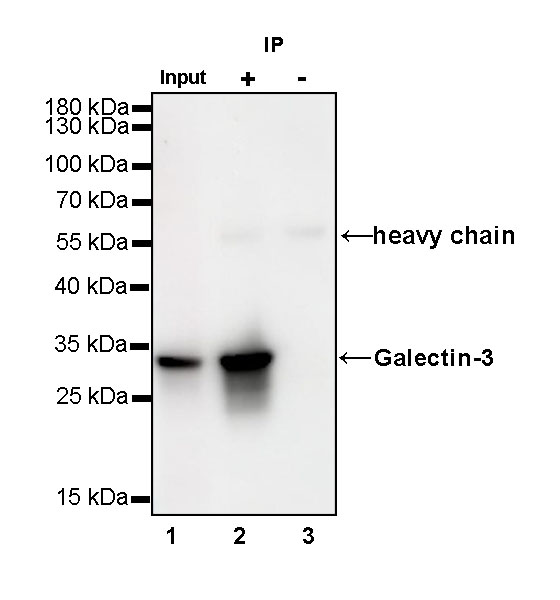 Western blot was performed on the immunoprecipitate using Galectin-3 Rabbit mAb at 1/1000 dilution.