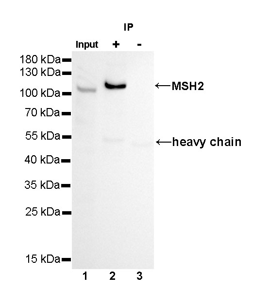 Western blot was performed on the immunoprecipitate using MSH2 Rabbit mAb at 1/1000 dilution.
