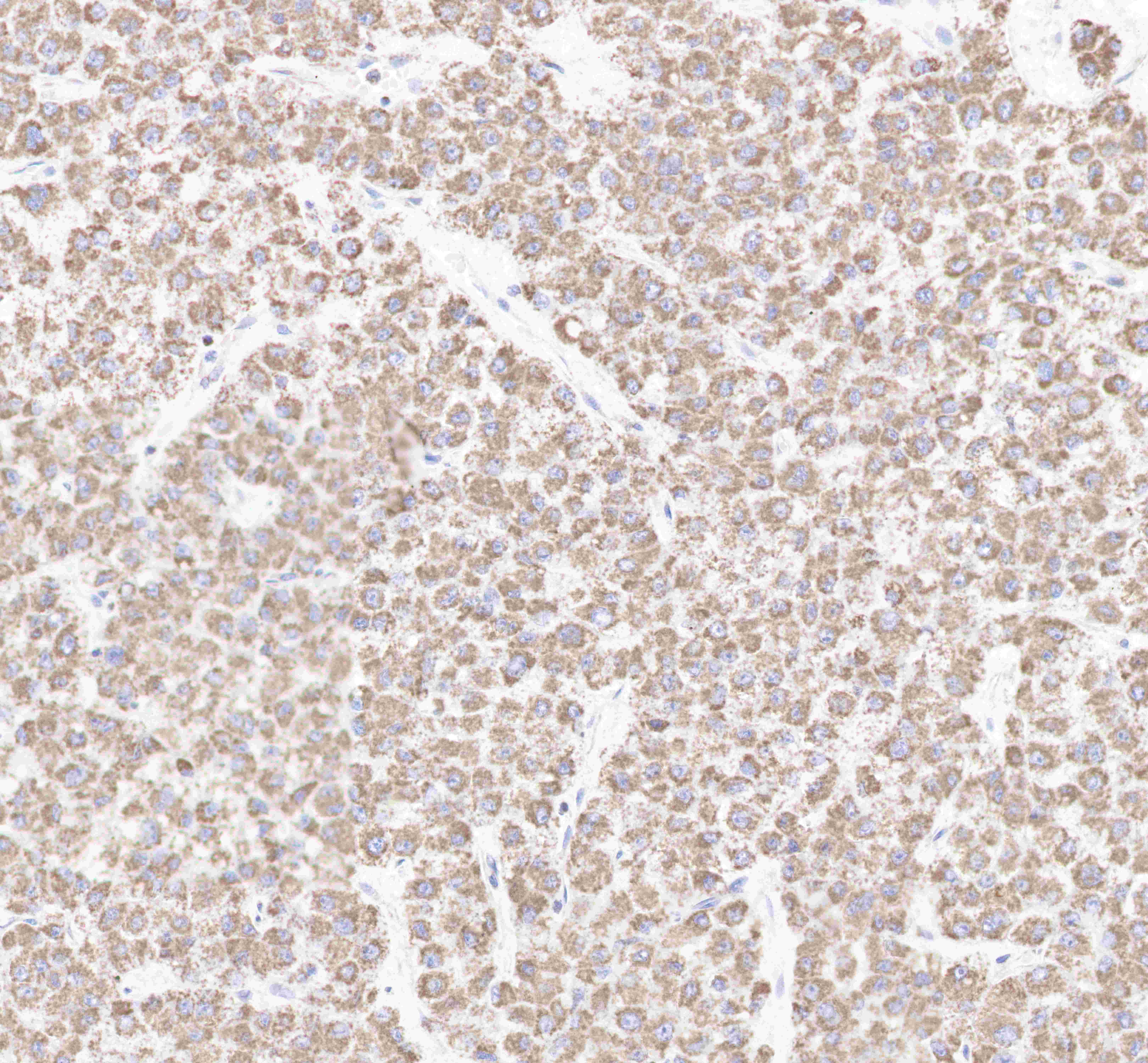 IHC shows positive staining in paraffin-embedded human hepatocellular carcinoma.