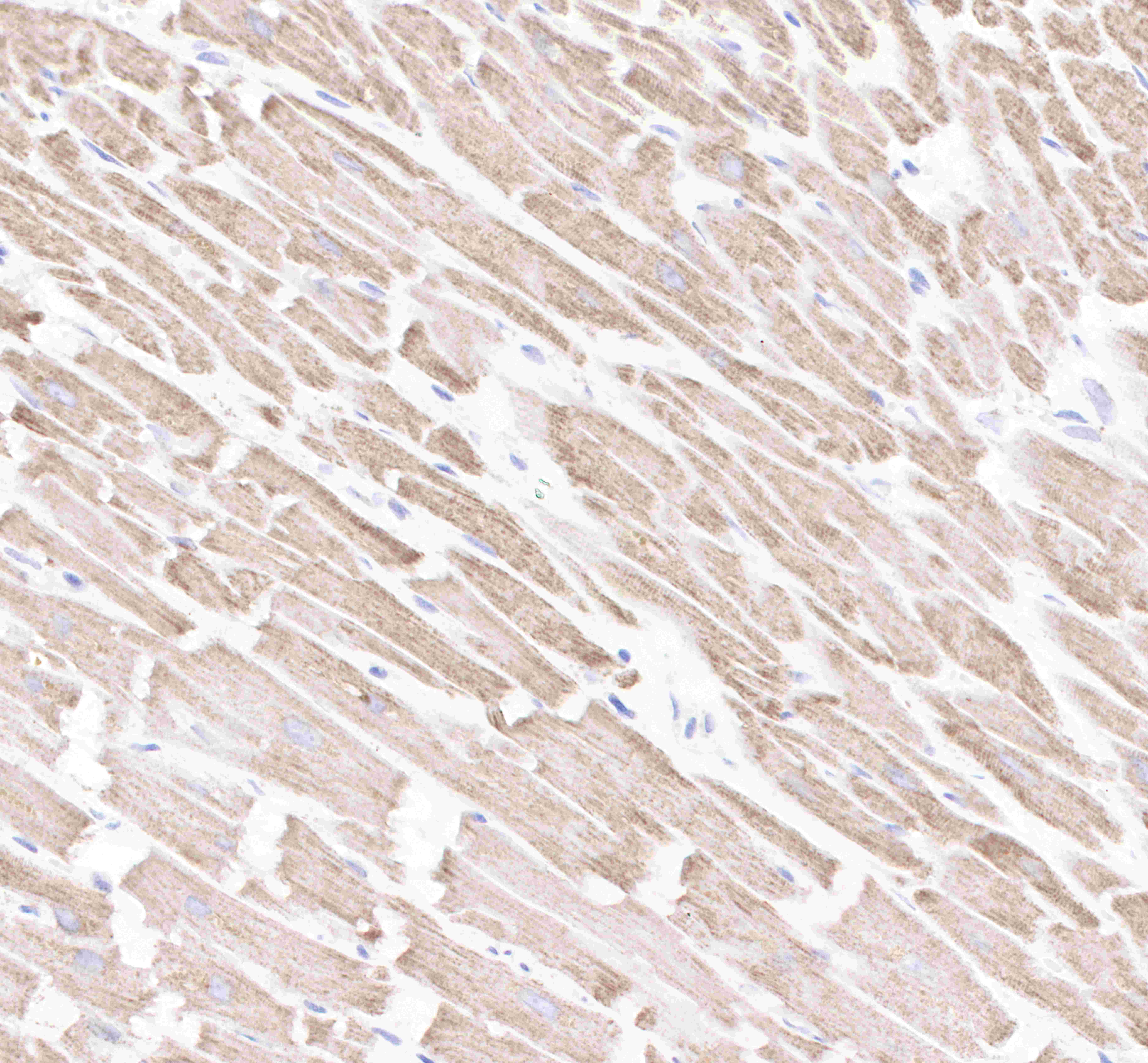 IHC shows positive staining in paraffin-embedded human myocardium.