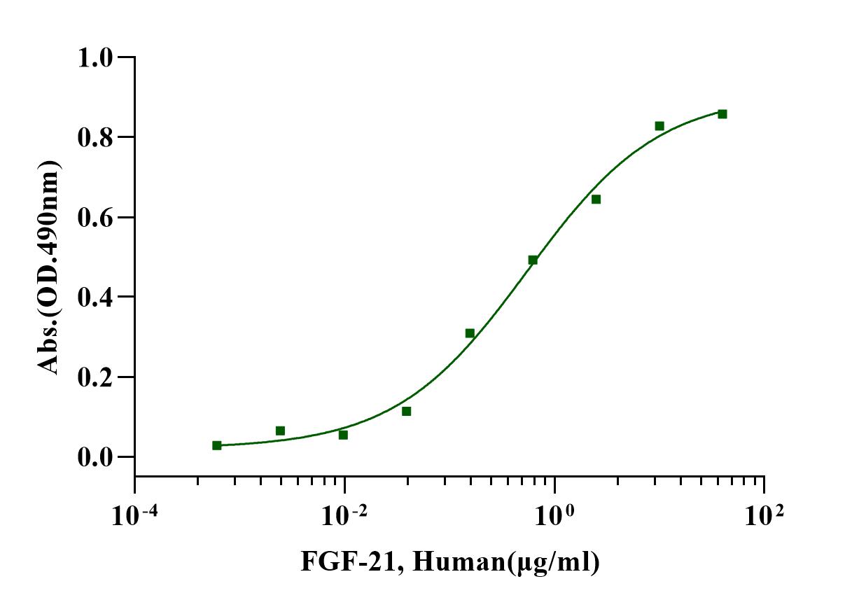 Fibroblast growth factor 21 (FGF-21) is a member of the FGF gene family. According to its structure, it is further classified as a member of the FGF19 subfamily. The subfamily includes FGF-19,-21 and-23. FGF-21 is an effective adipocyte glucose uptake activator that protects animals from diet-induced obesity when overexpressed in transgenic mice and reduces blood glucose and triglyceride levels during treatment in diabetic rodents. Some studies have shown that FGF-21 is a biomarker for the diagnosis of mitochondrial diseases. FGF-21 can cross the blood-brain barrier and regulate the phosphorylation cascade and gene expression in the whole hypothalamus. Intracerebroventricular injection of FGF21 can increase metabolic rate and insulin sensitivity in rats, but the site of action is not clear.