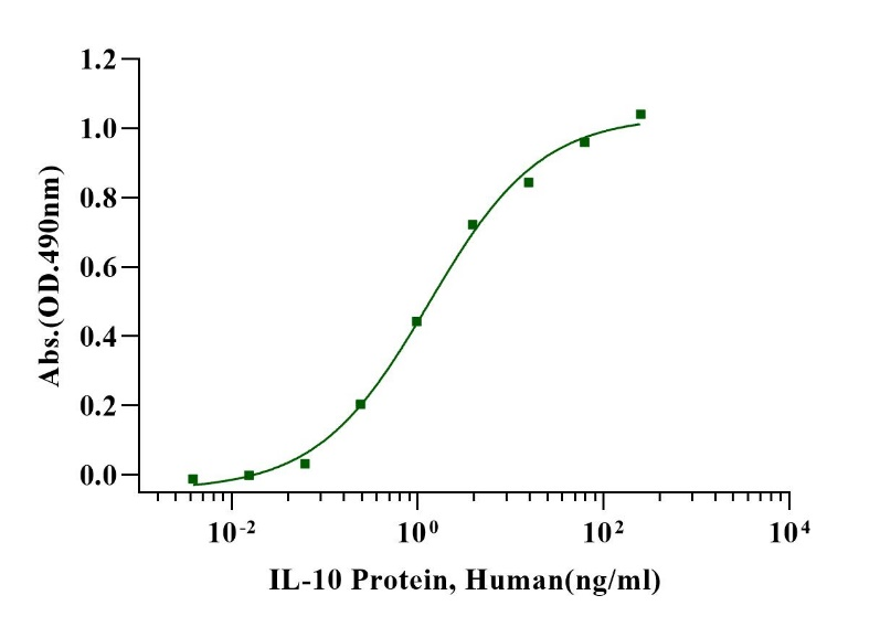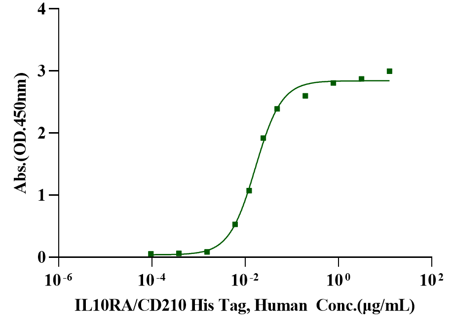 Immobilized IL-10, Human (Cat. No. UA040176) at 5.0μg/mL (100μL/well) can bind IL10RA/CD210 His Tag, Human (Cat. No. UA010657) with EC50 of 13.88-19.80 ng/mL.