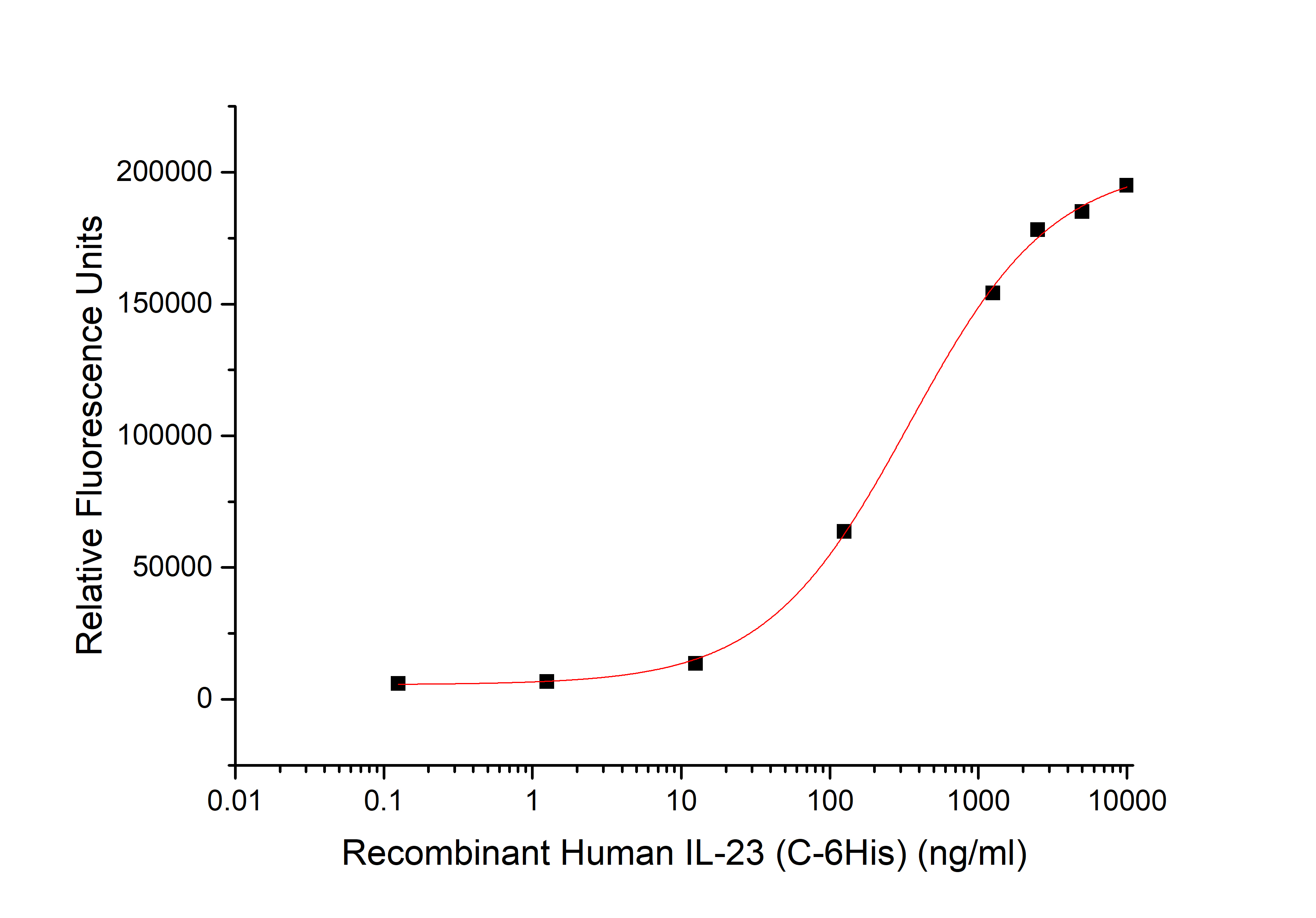 Interleukin 23 (IL-23) is a heterodimeric cytokine composed of two disulfide-linked subunits, a p19 subunit that is unique to IL-23, and a p40 subunit that is shared with IL-12. The p19 subunit has homology to the p35 subunit of IL-12, as well as to other single chain cytokines such as IL-6 and IL-11. The p40 subunit is homologous to the extracellular domains of the hematopoietic cytokine receptors. Although p19 is expressed by activated macrophages, dendritic cells, T cells, and endothelial cells, only activated macrophages and dendritic cells express p40 concurrently to produce IL-23. IL-23 has biological activities that are similar to, but distinct from IL-12. Both IL-12 and IL-23 induce proliferation and IFN-gamma production by human T cells. While IL-12 acts on both naive and memory human T cells, the effects of IL-23 is restricted to memory T cells.