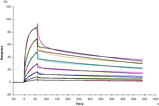 Anti-His antibody Immobilized on CM5 Chip captured CD7 Ligand/SECTM1 His Tag, Mouse (Cat. No. UA010323), can bind CD7 Fc Chimera, Mouse (Cat. No. UA010333) with an affinity constant of 31.54nM as determined in SPR assay.