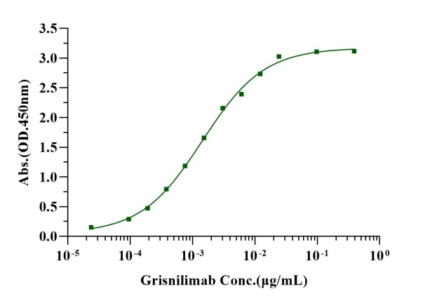 Immobilized CD7 His Tag Protein, Human (Cat. No. UA010396) at 2.0μg/mL (100μL/well) can bind Grisnilimab (Cat. No. UA011033) with EC50 of 1.22-1.71ng/mL.