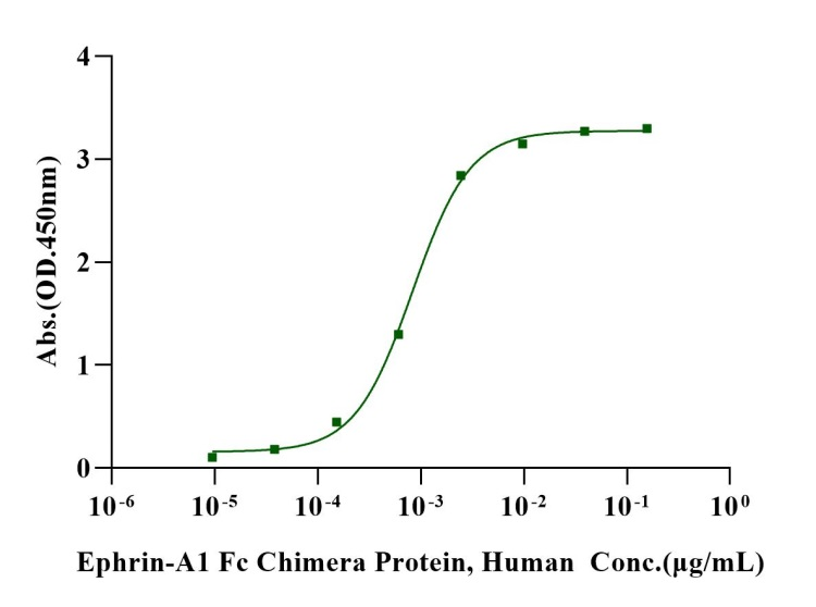 Immobilized EphA2 His Tag, Human (Cat. No. UA010580) at 2μg/mL (100μL/well) can bind Ephrin-A1 Fc Chimera Protein, Human (Cat. No. UA011030) with EC50 of 0.70-1.00 ng/ml.