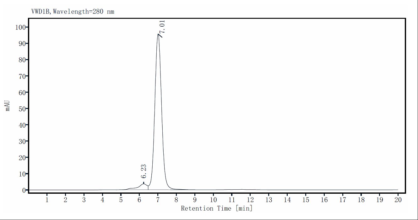 The purity of PSMA/FOLH1 Fc Chimera Protein, Human is more than 95% determined by SEC-HPLC.
