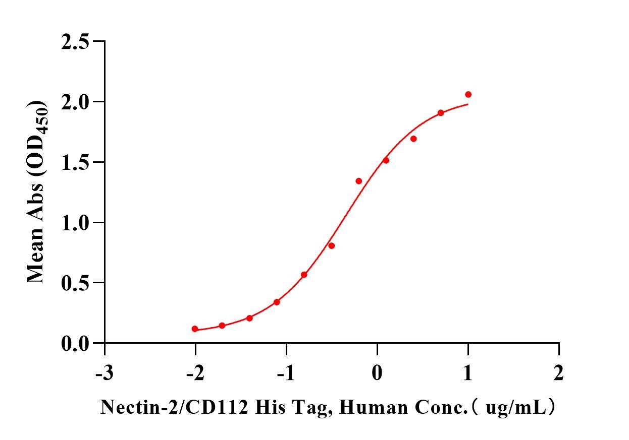 PVRIG (poliovirus named receptor-related immunoglobulin domain-containing), also known as CD112R, is a novel member of the PVR-like co-signaling network. CD112R is a 34-kDa transmembrane monomer composed of a single extracellular IgV domain, one transmembrane domain, and a long intracellular domain. The human CD112R intracellular domain comprises two tyrosine residues, one of which is part of an ITIM-like motif and a potential site for phosphatases. In humans, CD112R is expressed on T cells (predominantly CD8+ T cells) and natural killer (NK) cells, but not on B cells, monocytes or neutrophils. PVRIG binds to a single ligand, poliovirus receptor-related 2 (PVRL2, also known as CD112 or Nectin-2), and exerts an inhibitory effect on cytotoxic lymphocyte activity, likely via an ITIM-like motif in its intracellular domain. CD112R transduces signals by recruiting tyrosine phosphatases. Additionally, CD112R potentially represents a new coinhibitory receptor that suppresses T cell receptor-mediated NFAT activation.