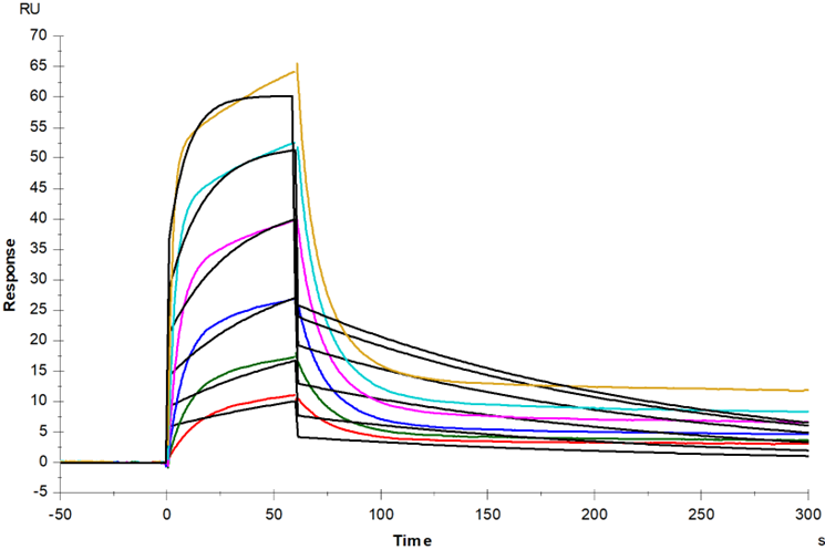 RNF43 mFc Chimera, Mouse (Cat. No. UA010216) captured on Protein A Biosenor, can bind RSPO1(21-146) His Tag, Human (Cat. No. UA040022) with an affinity constant of 6.73nM as determined in SPR assay.