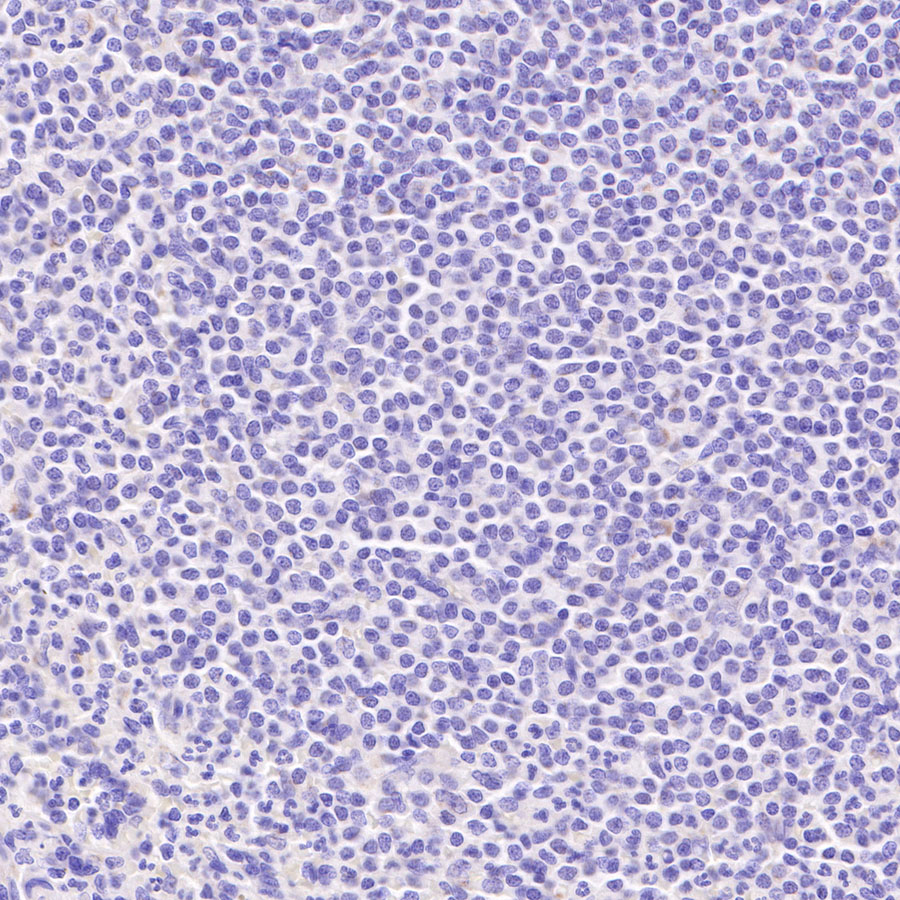 Negative control: IHC shows negative staining in paraffin-embedded human spleen. Anti-AMACR antibody was used at 1/1000 dilution, followed by a HRP Polymer for Mouse & Rabbit IgG (ready to use). Counterstained with hematoxylin. Heat mediated antigen retrieval with Tris/EDTA buffer pH9.0 was performed before commencing with IHC staining protocol.