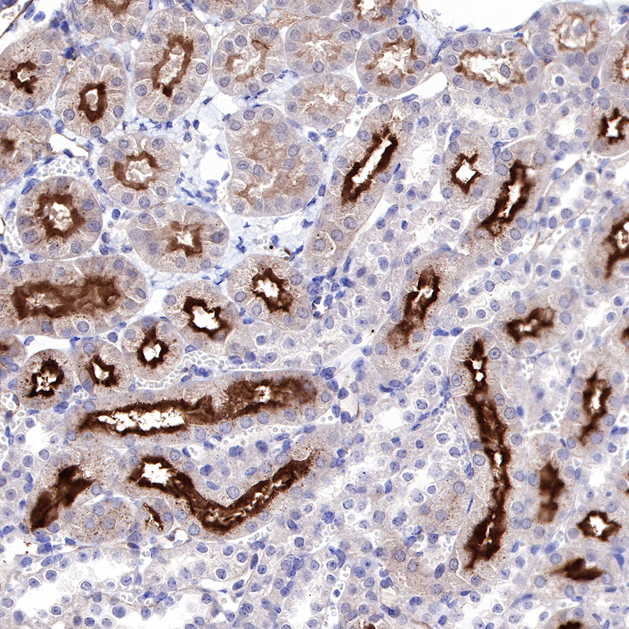 IHC shows positive staining in paraffin-embedded mouse kidney. Anti-CD73 antibody was used at 1/500 dilution, followed by a HRP Polymer for Mouse & Rabbit IgG (ready to use). Counterstained with hematoxylin. Heat mediated antigen retrieval with Tris/EDTA buffer pH9.0 was performed before commencing with IHC staining protocol.