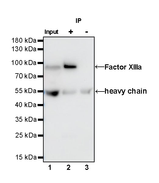 Western blot was performed on the immunoprecipitate using Factor XIIIa Rabbit mAb at 1/1000 dilution.