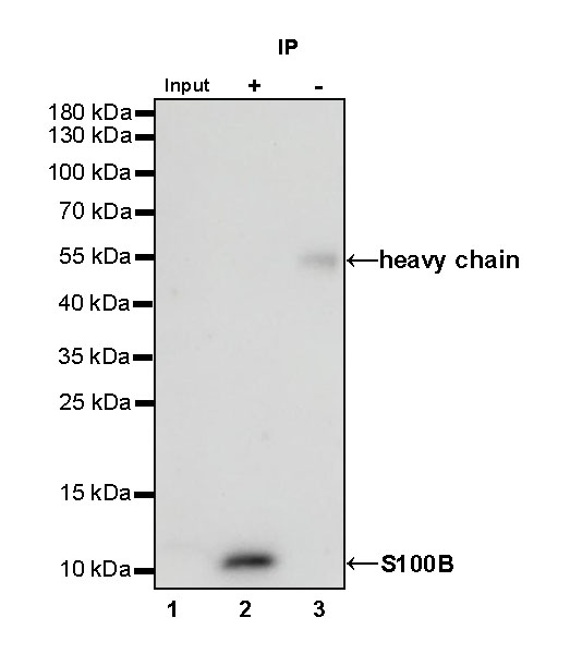 S100B Rabbit mAb at 1/50 dilution (1 µg) immunoprecipitating S100B in 0.4 mg mouse brain lysate.