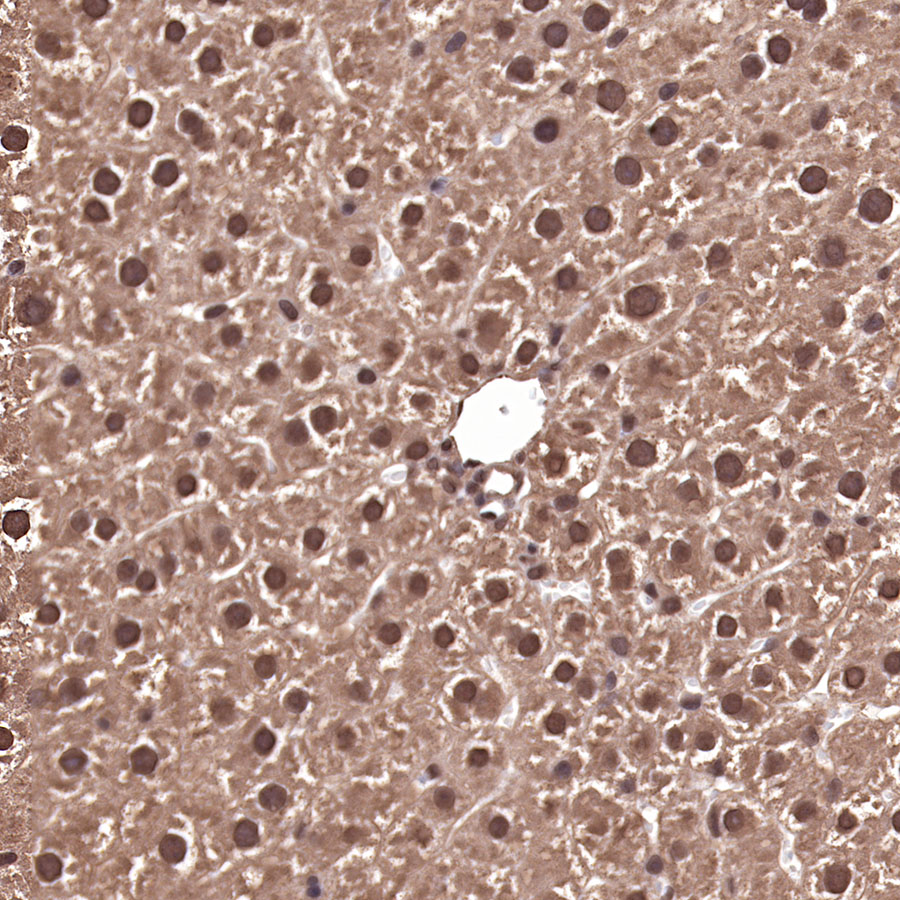 IHC shows positive staining in paraffin-embedded rat liver. Anti-Ubiquitin antibody was used at 1/2000 dilution, followed by a HRP Polymer for Mouse & Rabbit IgG (ready to use). Counterstained with hematoxylin. Heat mediated antigen retrieval with Tris/EDTA buffer pH9.0 was performed before commencing with IHC staining protocol.