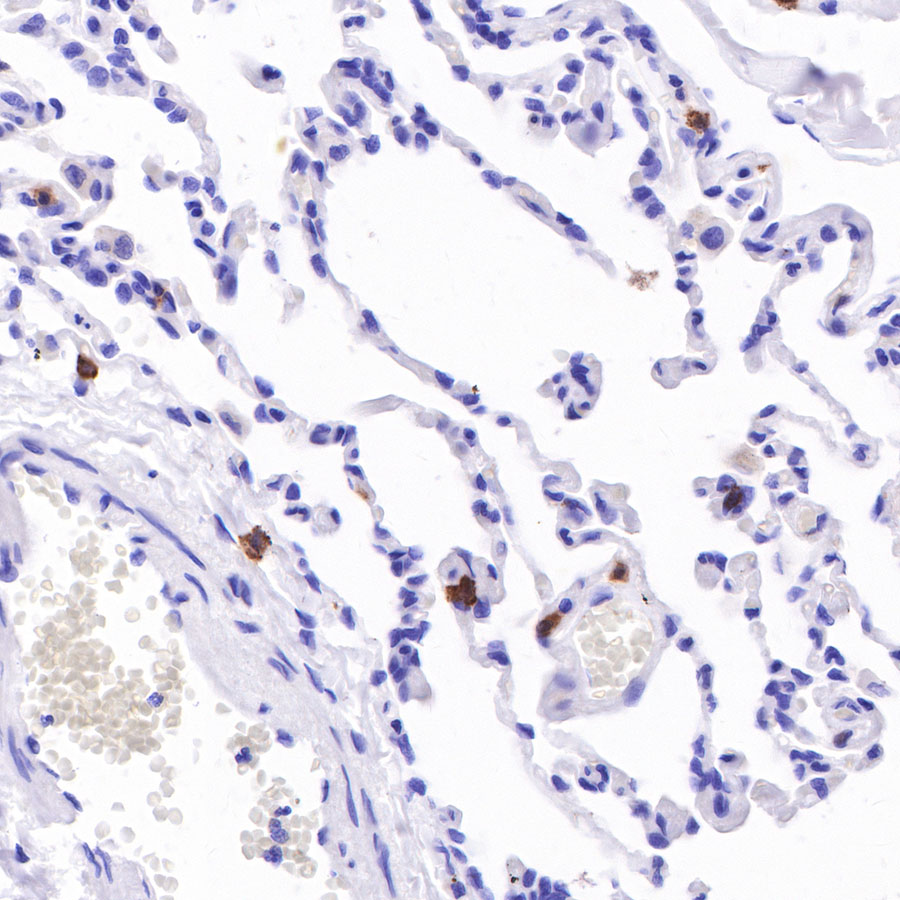 IHC shows positive staining in paraffin-embedded human lung. Anti-CD103 antibody was used at 1/100 dilution, followed by a HRP Polymer for Mouse & Rabbit IgG (ready to use). Counterstained with hematoxylin. Heat mediated antigen retrieval with Tris/EDTA buffer pH9.0 was performed before commencing with IHC staining protocol.