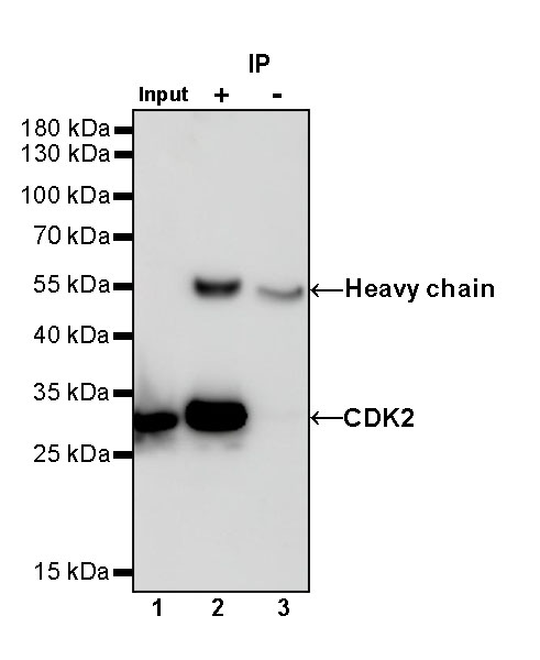 Western blot was performed on the immunoprecipitate using CDK2 Rabbit mAb at 1/1000 dilution.