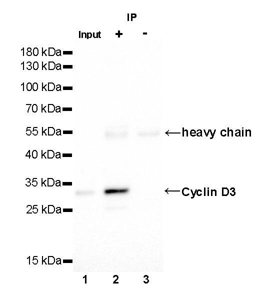 Western blot was performed on the immunoprecipitate using Cyclin D3 Rabbit mAb at 1/1000 dilution.