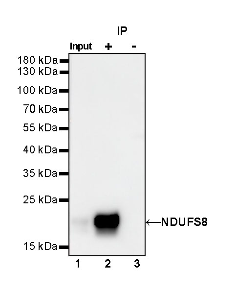 Western blot was performed on the immunoprecipitate using NDUFS8 Rabbit mAb at 1/1000 dilution.
