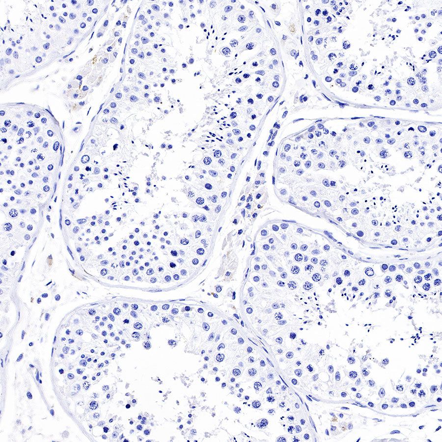 Negative control: IHC shows negative staining in paraffin-embedded human testis. Anti-PAPP-A antibody was used at 1/1000 dilution, followed by a HRP Polymer for Mouse & Rabbit IgG (ready to use). Counterstained with hematoxylin. Heat mediated antigen retrieval with Tris/EDTA buffer pH9.0 was performed before commencing with IHC staining protocol.
