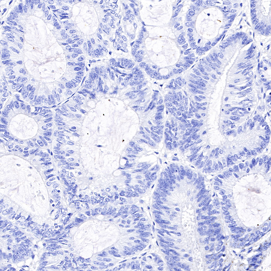 Negative control: IHC shows negative staining in paraffin-embedded human colon cancer. Anti-PAPP-A antibody was used at 1/1000 dilution, followed by a HRP Polymer for Mouse & Rabbit IgG (ready to use). Counterstained with hematoxylin. Heat mediated antigen retrieval with Tris/EDTA buffer pH9.0 was performed before commencing with IHC staining protocol.