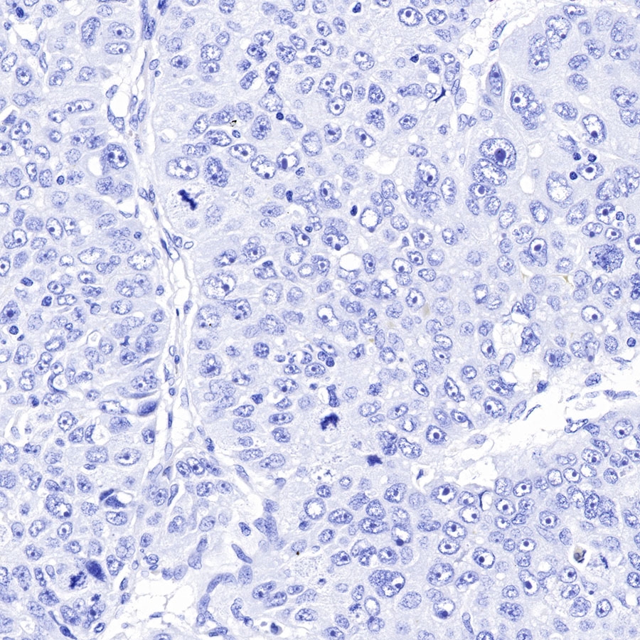 Negative control: IHC shows negative staining in paraffin-embedded human hepatocellular carcinoma. Anti-PAPP-A antibody was used at 1/1000 dilution, followed by a HRP Polymer for Mouse & Rabbit IgG (ready to use). Counterstained with hematoxylin. Heat mediated antigen retrieval with Tris/EDTA buffer pH9.0 was performed before commencing with IHC staining protocol.