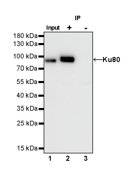 Western blot was performed on the immunoprecipitate using Ku80 Rabbit mAb at 1/1000 dilution.