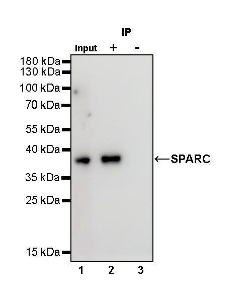Western blot was performed on the immunoprecipitate using SPARC Rabbit mAb at 1/1000 dilution.