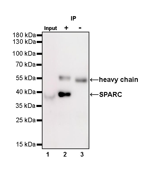 Western blot was performed on the immunoprecipitate using SPARC Rabbit mAb at 1/1000 dilution.
