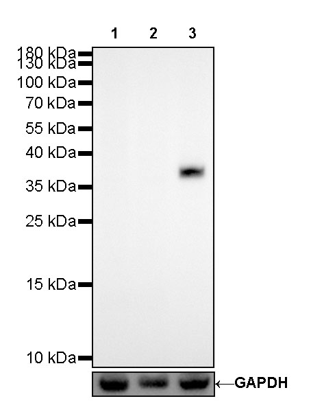 Lane 3: Rabbit monoclonal IgG IP in A375 whole cell lysate