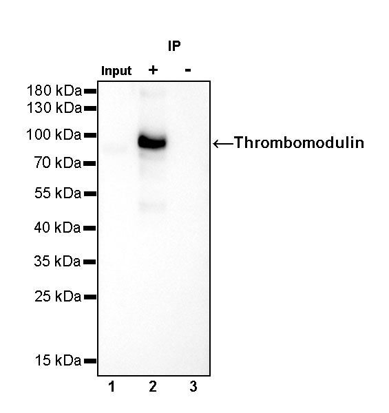 Western blot was performed on the immunoprecipitate using Thrombomodulin Rabbit mAb at 1/5000 dilution.