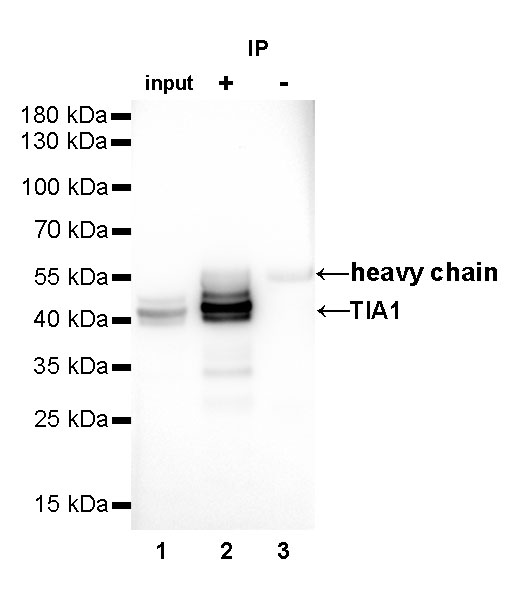 Western blot was performed on the immunoprecipitate using TIA1 Rabbit mAb at 1/1000 dilution.