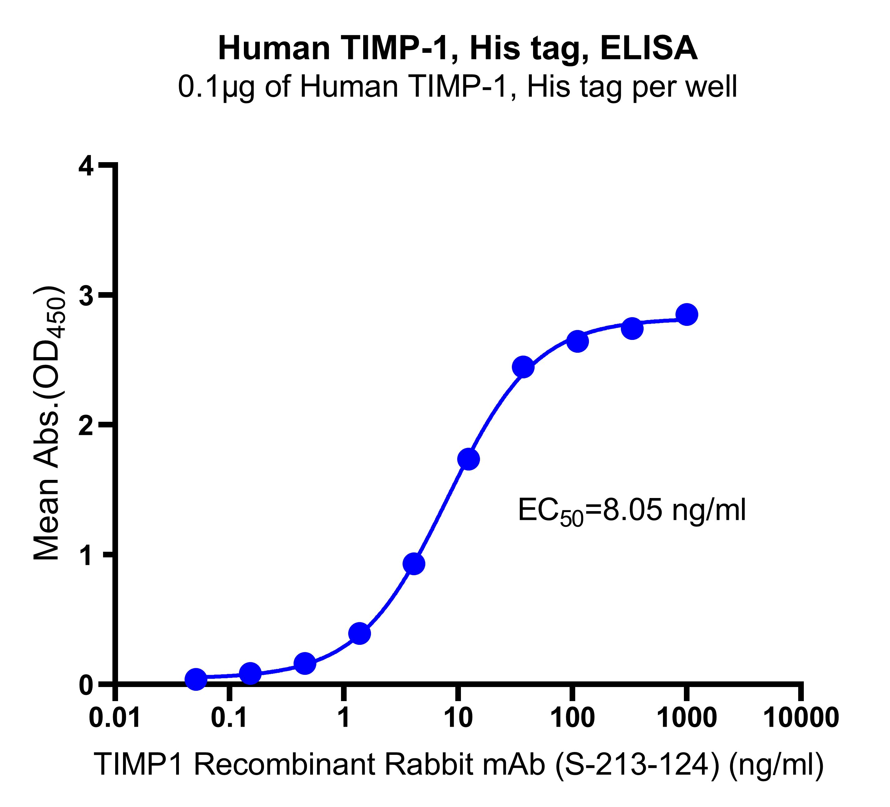 Immobilized Human TIMP-1, His tag at 2 μg/mL (50 μL/well) can bind TIMP1 Recombinant Rabbit mAb (S-213-124) (Cat. No. S0B0793) with EC50 of 7.3-8.9 ng/mL.