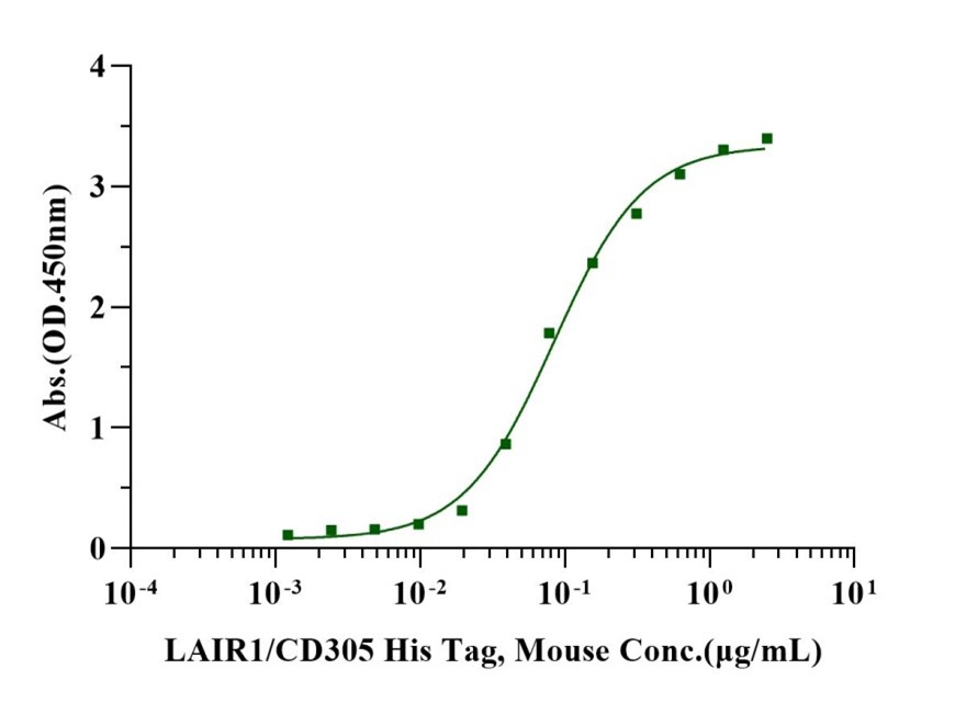 Immobilized Cell AdhereTM Type I collagen, Human, Lyophilzed at 2.0μg/mL (100μL/well) can bind LAIR1/CD305 His Tag, Mouse (Cat. No. UA010087) with EC50 of 0.071-0.10μg/m.