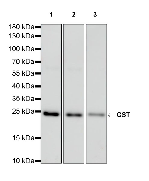 Lane 3: GST Rabbit mAb at 1/20000 dilution