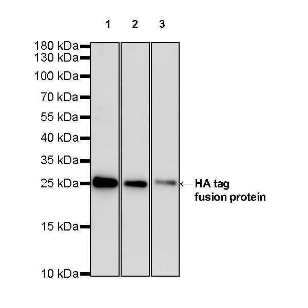Lane 1: HA tag Recombinant Rabbit mAb at 1/5000 dilution