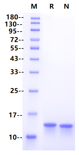 Human β2-Microglobulin/B2M His Tag on SDS-β2-Microglobulin/B2M His Tag, Human,1μg on SDS-PAGE under reducing and Non-reducing condition. The purity is greater than 95%.