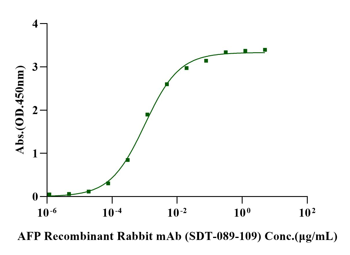 Immobilized AFP Protein, Human (Cat. No. UA030075) at 2.0μg/mL (100μL/well) can bind AFP Recombinant Rabbit mAb (SDT-089-109) (Cat. No. S0B3146 ) with EC50 of 0.82-1.27ng/ mL.