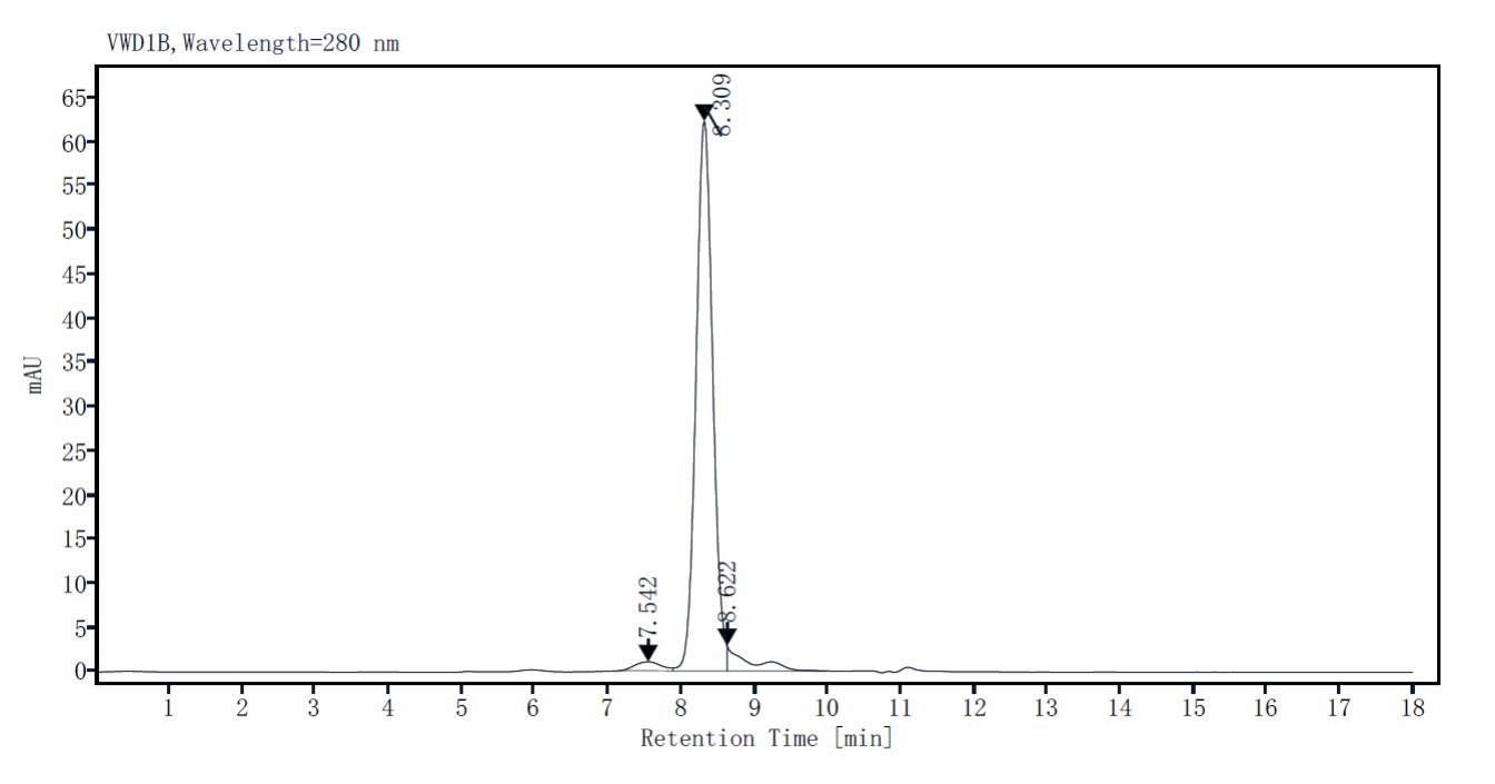 The purity of AFP Protein, Human is more than 95% determined by SEC-HPLC.