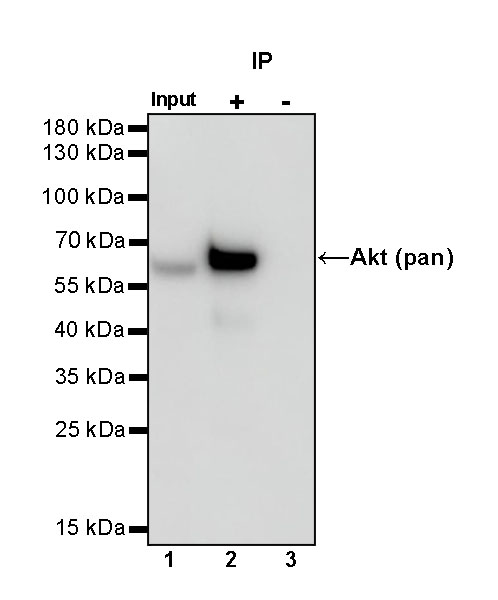 Western blot was performed on the immunoprecipitate using Akt (pan) Rabbit mAb at 1/1000 dilution.
